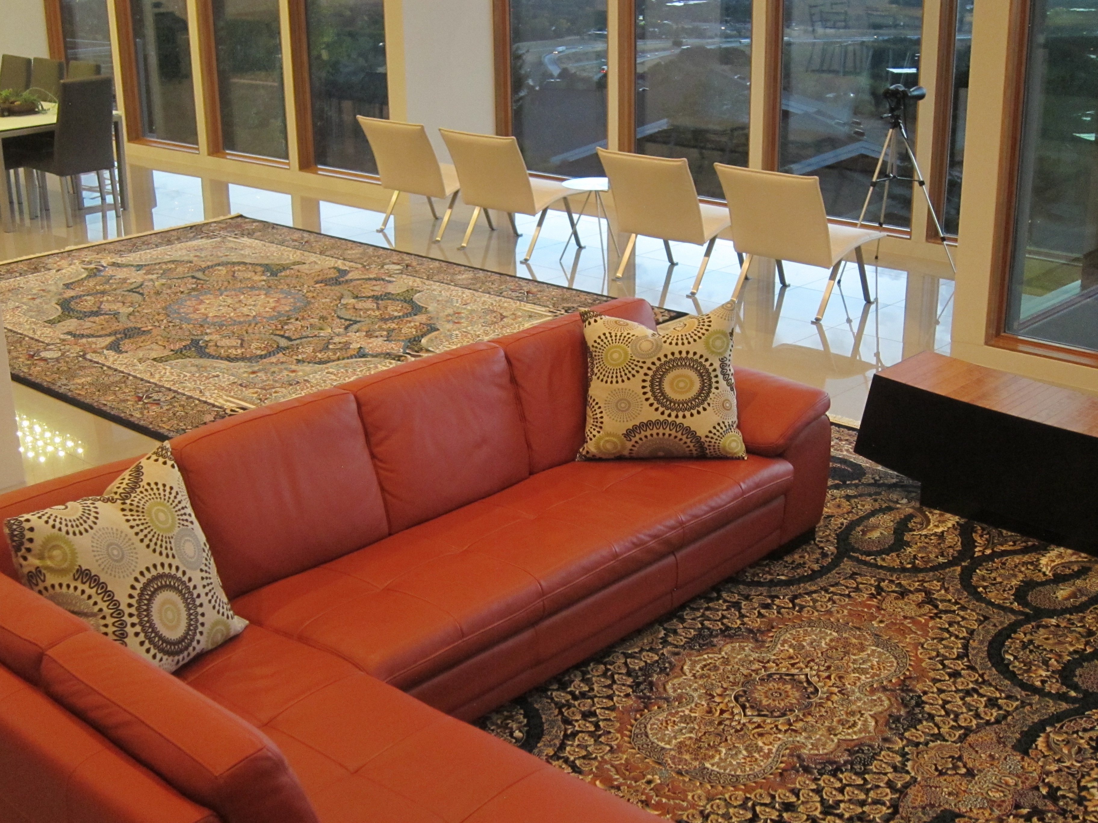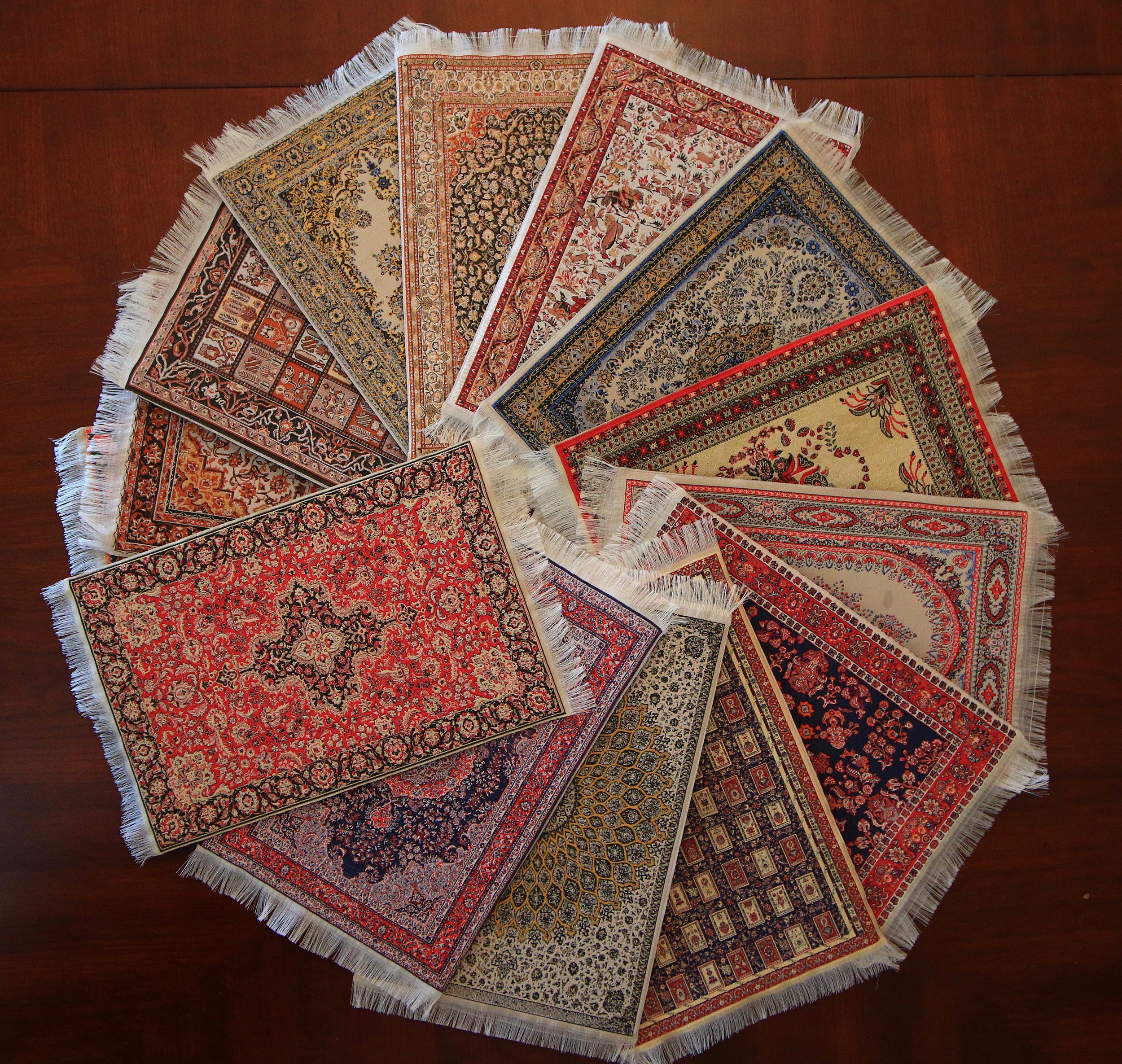 Varieties of machine-woven Persian rugs in traditional and modern designs.
